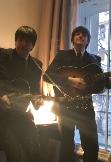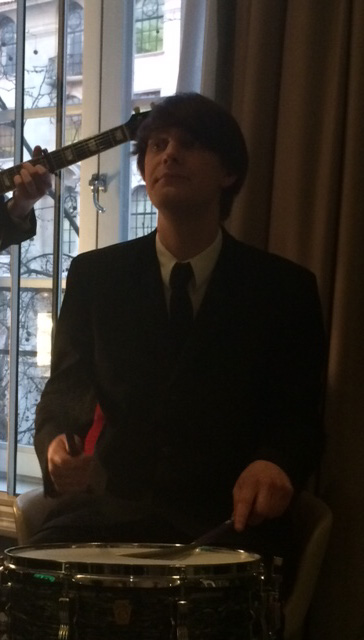 An “exclusive” opportunity is how the email read from the lovely Official Theatre and they certainly didn’t disappoint! This event was a two-fold opening night. The Waldorf Hilton set in its prestigious location on the Aldwych have refurbished one of their suites in the theme of The Beatles and who better to launch it then these Fab Four one of the casts of Let It Be From left to right Ben Cullingworth (Ringo) Paul Mannion (George) Ryan Coath (John) Peter John Jackson (Paul)