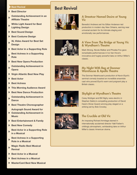 In compiling this blog prior to the awards ceremony I’ve been struck by what a strong year this is with some outstanding stellar performances and casts. Most of my Twitter followers will know about my particular penchant for the audience award is however again who could argue with any of the four that are in that category winning?