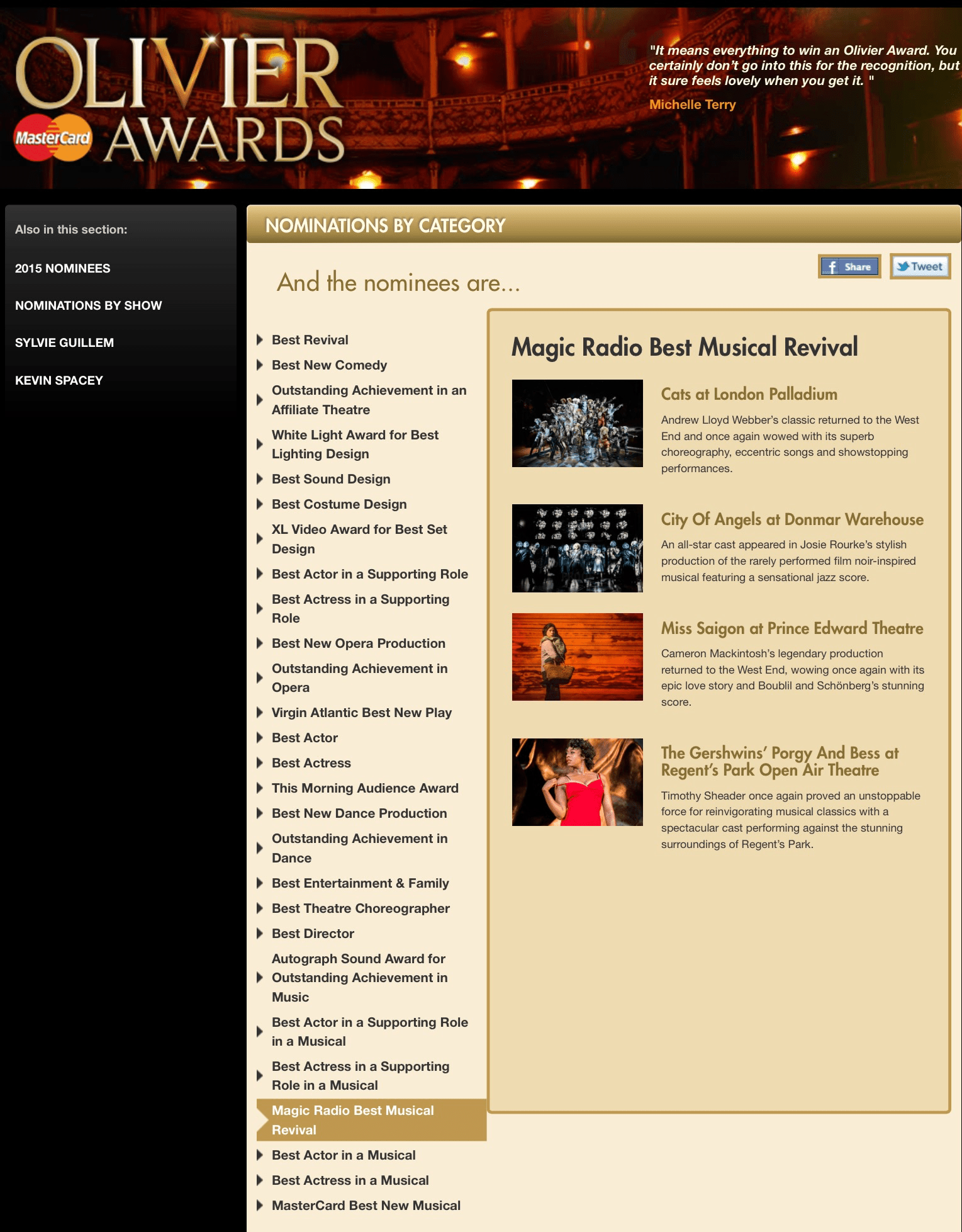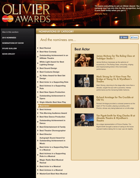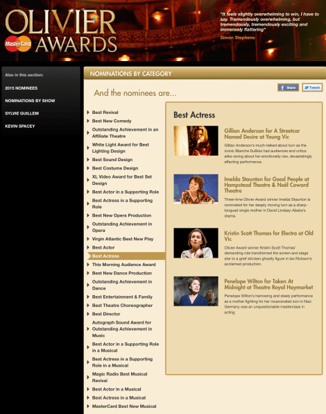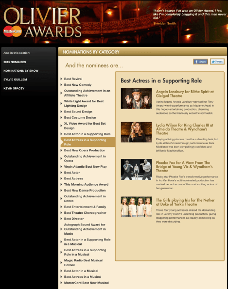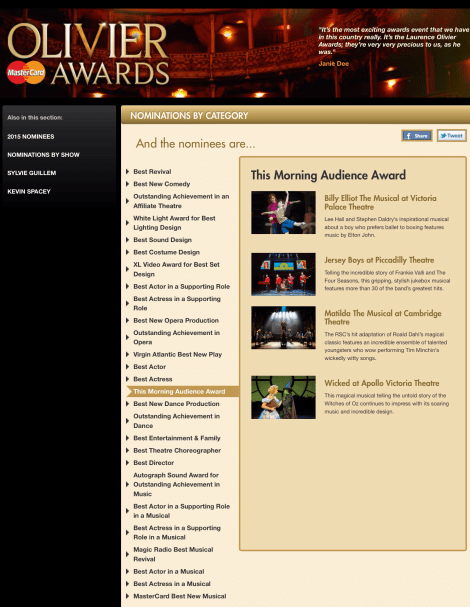 Hope you’ve enjoyed this evening as much as I have that’s Carn’s Theatre Passion over and out for the OlivierAwards 2015 see you all in 2016!