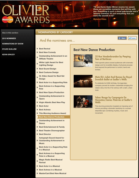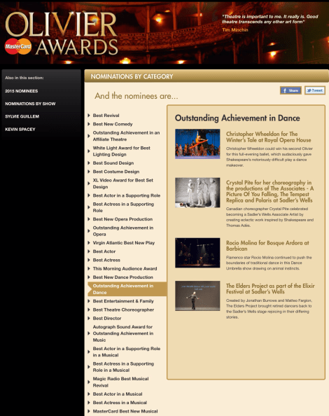 And the Winner is …………Crystal Pite for her Sadlers Wells choreography
