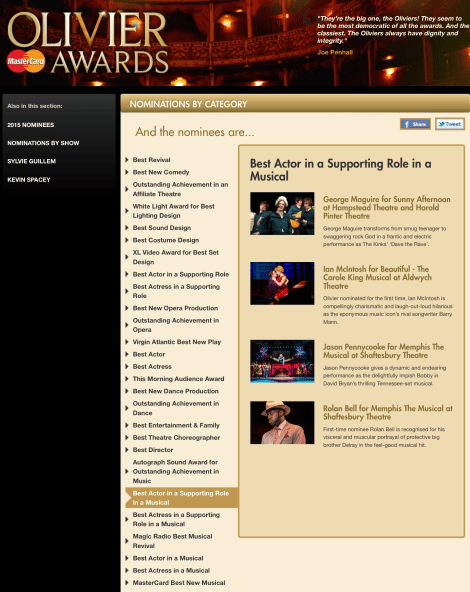 And the Winner is …….Ray Davies for Sunny Afternoon Read my LondonTheatre1 Review here