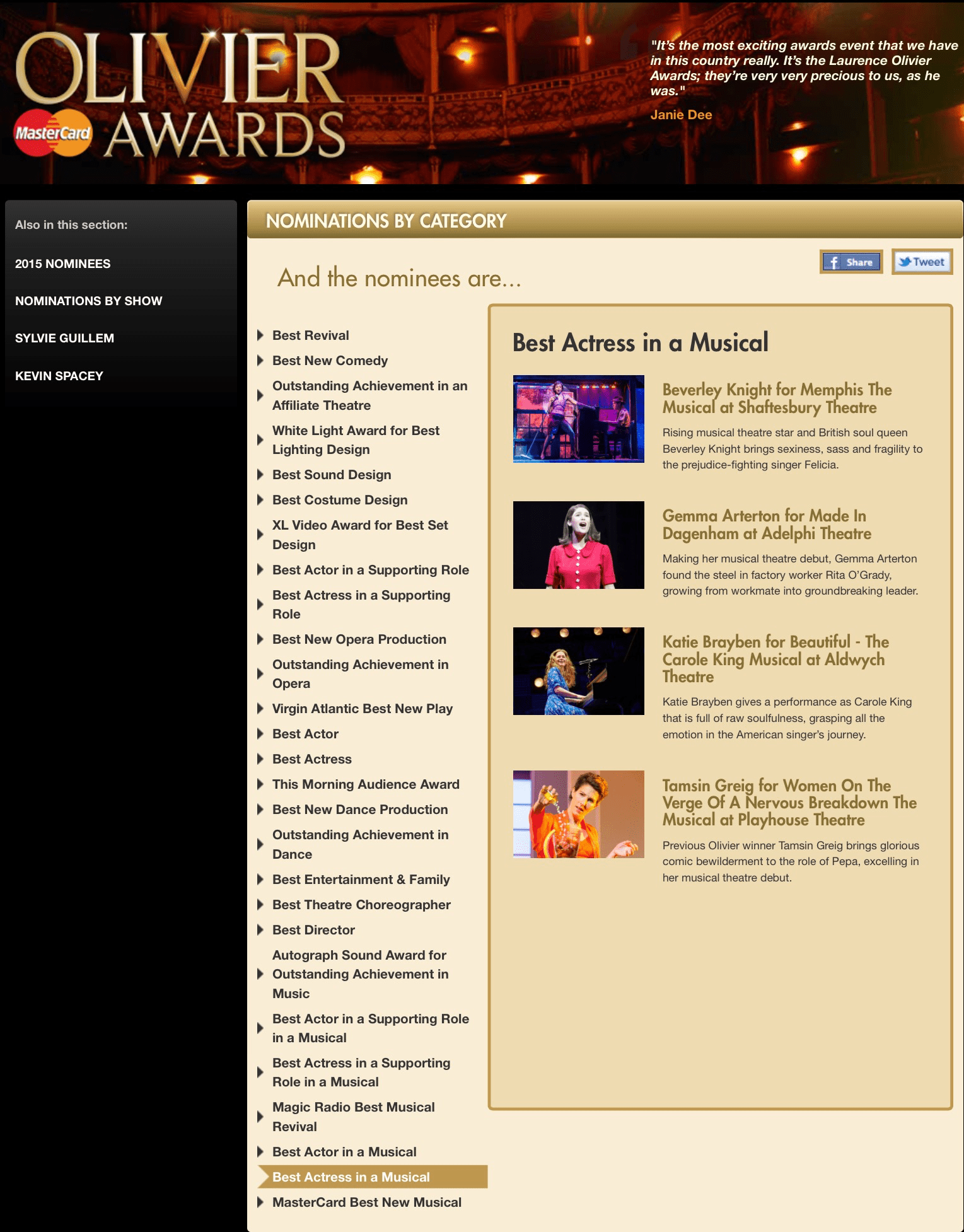 And the Winner is …………Katie Brayben for Beautiful Read my LondontheatreDirect Review here