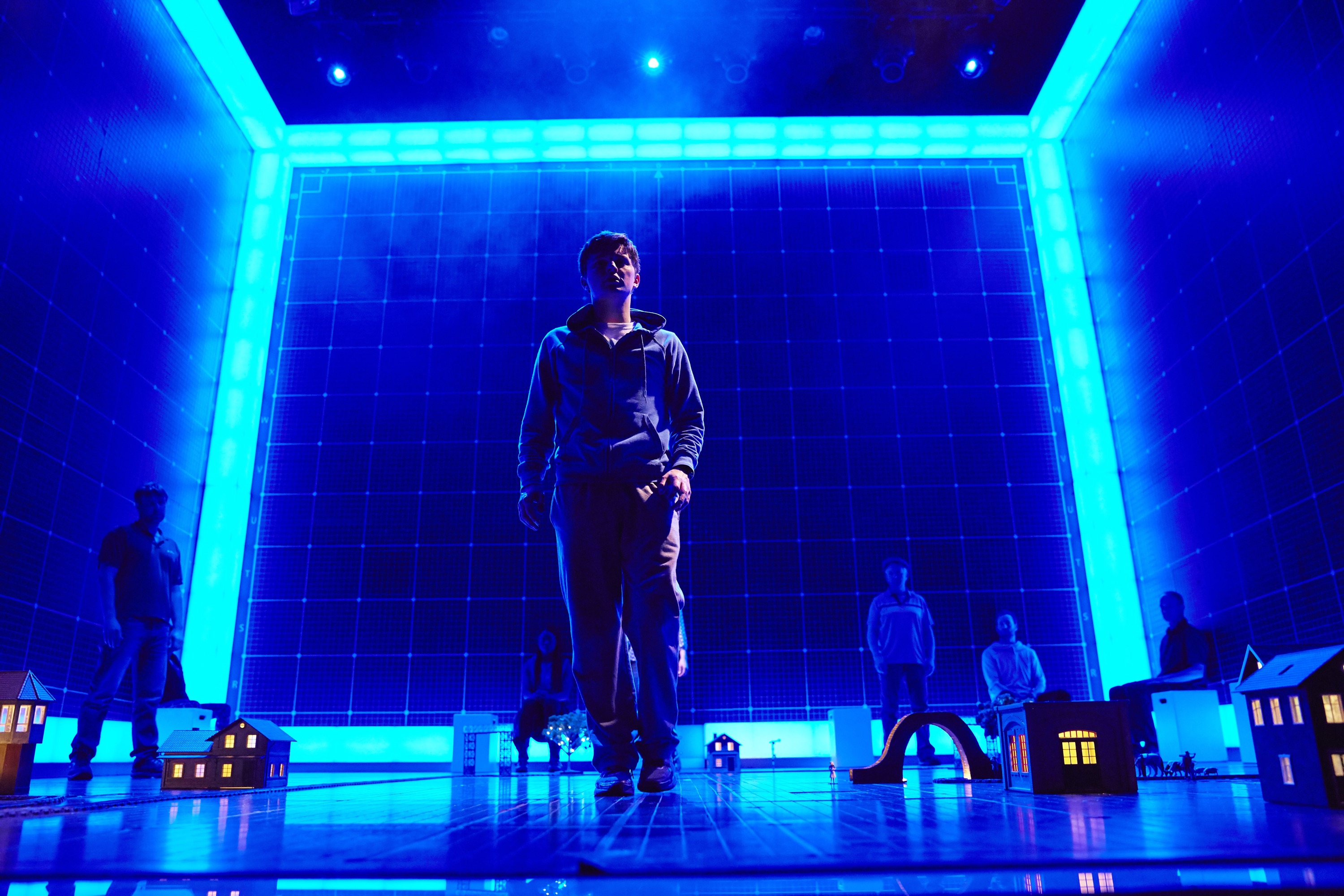 The Curious Incident of the Dog in the Night-Time is by Simon Stephens, adapted from Mark Haddon’s best-selling novel, directed by Marianne Elliott, designed by Bunny Christie, with lighting by Paule Constable, video design by Finn Ross, movement by Scott Graham and Steven Hoggett for Frantic Assembly, music by Adrian Sutton and sound by Ian Dickinson for Autograph