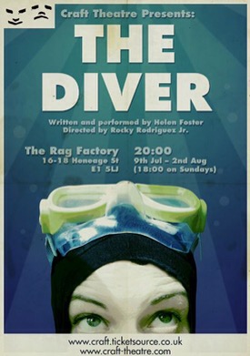 The Diver is an intimate performance from actor and improviser Helen Foster, devised by her and Craft Theatre artistic director Rocky Rodriguez Jr. Helen has performed internationally and is known for her work with Craft Theatre, who had recent success with their adaptation of Dante’s Inferno, which played at the Rag Factory earlier this year. The company specialise in use exhaustion, cognitive neuroscience, sociology and devising techniques to create work that focuses on emotional authenticity and depth – keeping the actor present, and telling stories with integrity.
